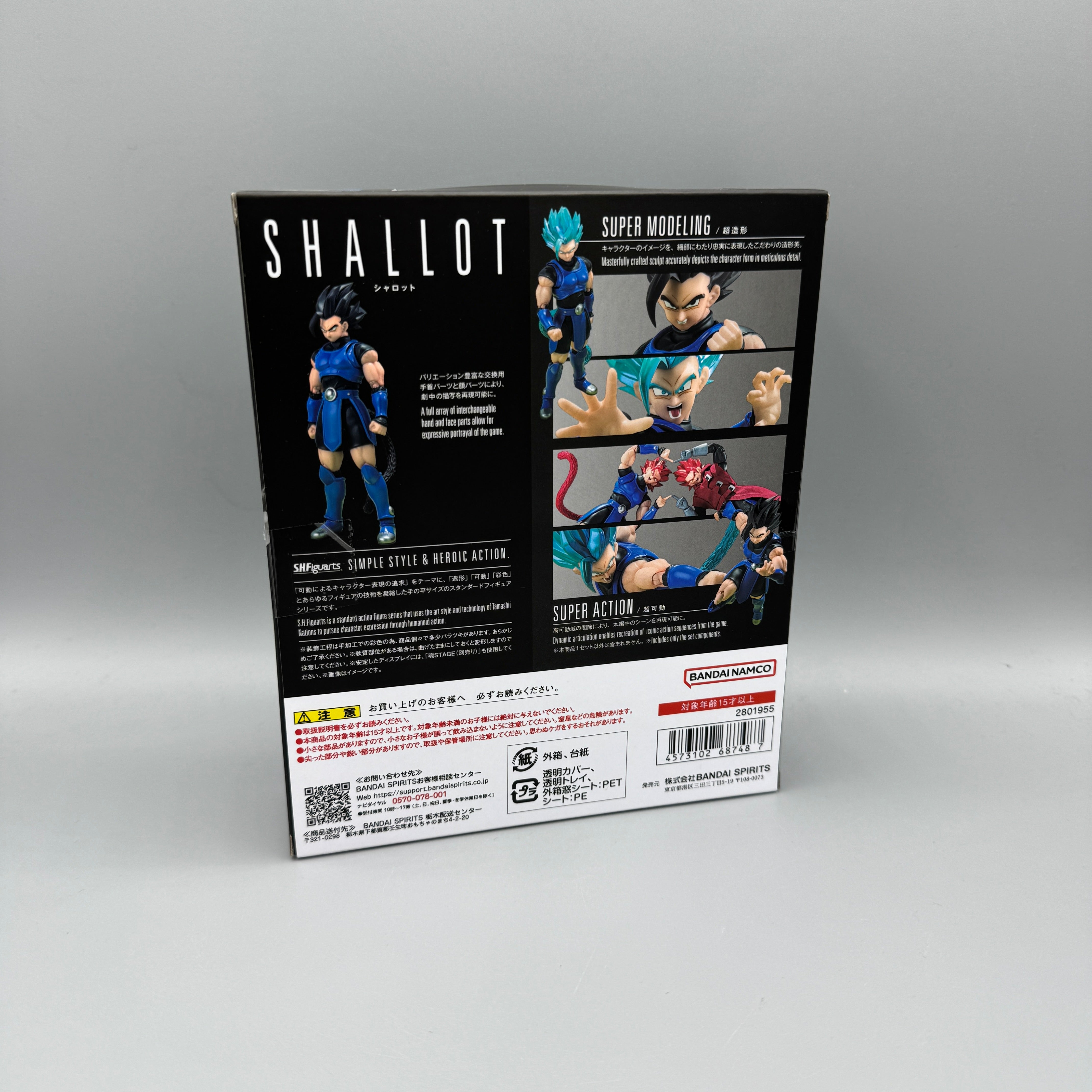 In addition to the normal-form facial expression, an exchangeable facial expression of Shallot’s trademark grin is also included. Exchangeable head parts for transformation into his Super Saiyan God Super Saiyan form are included as well.
