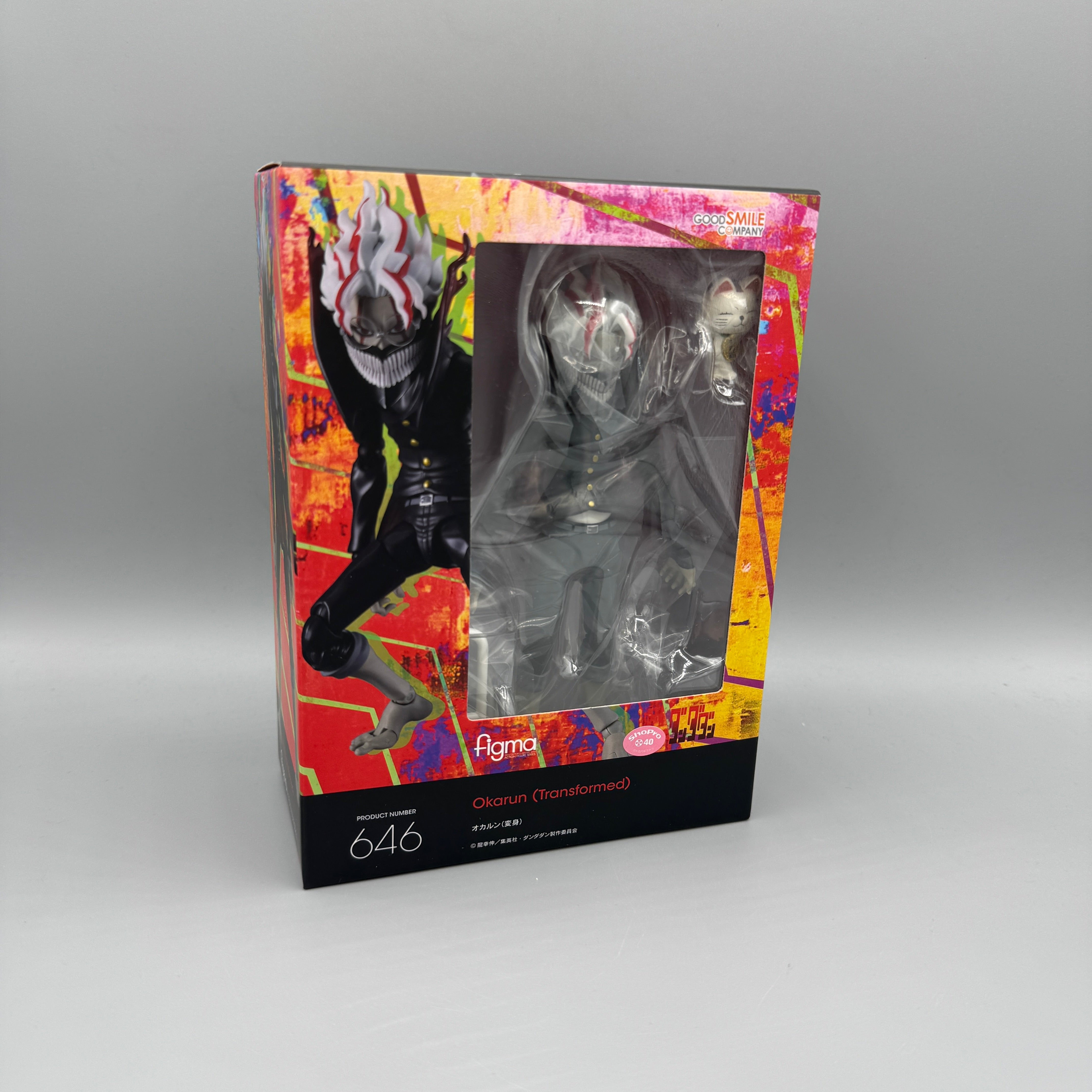 Okarun can be displayed with or without a mask with the use of interchangeable head parts. The figma also includes a mini figure of Turbo Granny in manekineko form!