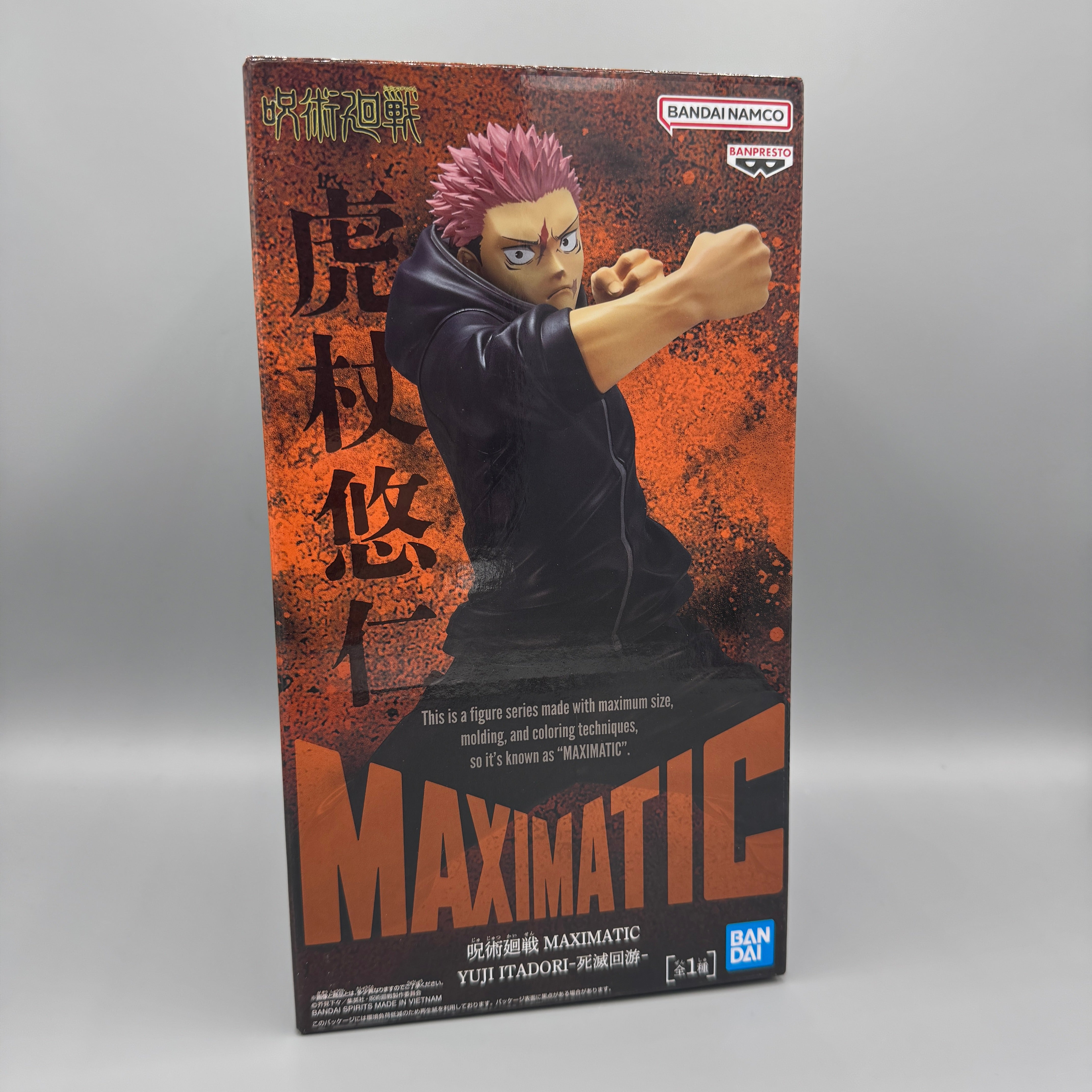 From the MAXIMATIC series comes Itadori Yuji from Jujutsu Kaisen, brought to life with impressive volume and presence. This figure delivers dynamic posing and bold sculpting, capturing Itadori Yuji's power and intensity with detailed brush-painted finishes. A standout piece for fans of the series.